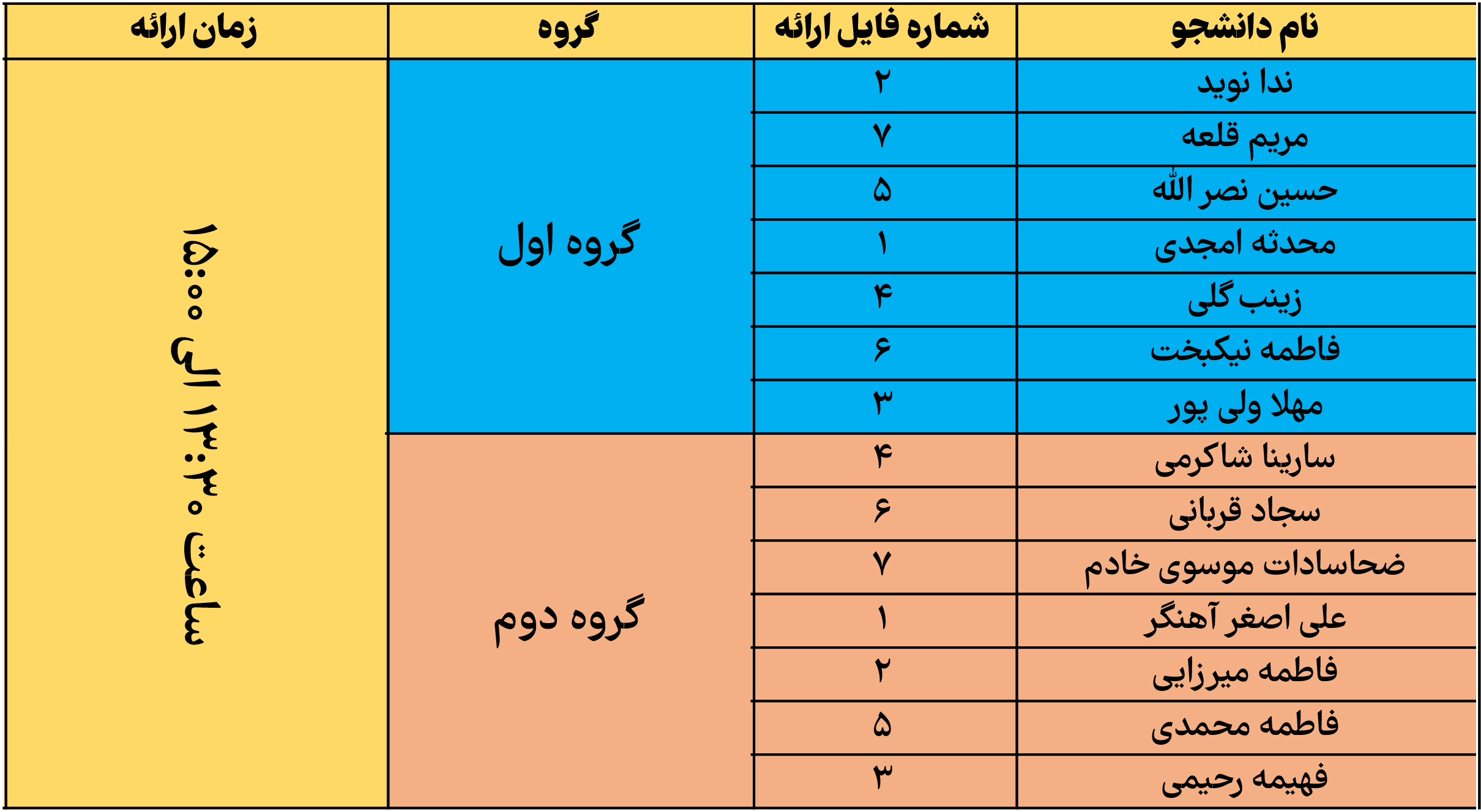 اطلاعیه مهم:ضمن سلام و خسته نباشید تا به اینجای راهی که برگزیده اید، به اطلاع شما عزیزان میرساند TP اول شما با موضوع Vocabularyدر روز پنجشنبه 9 بهمن ماه برگزار خواهد شد. لطفا حتما در زمان تعیین شده در جدول زیر در آکادمی زبان هیوا حضور یابید.